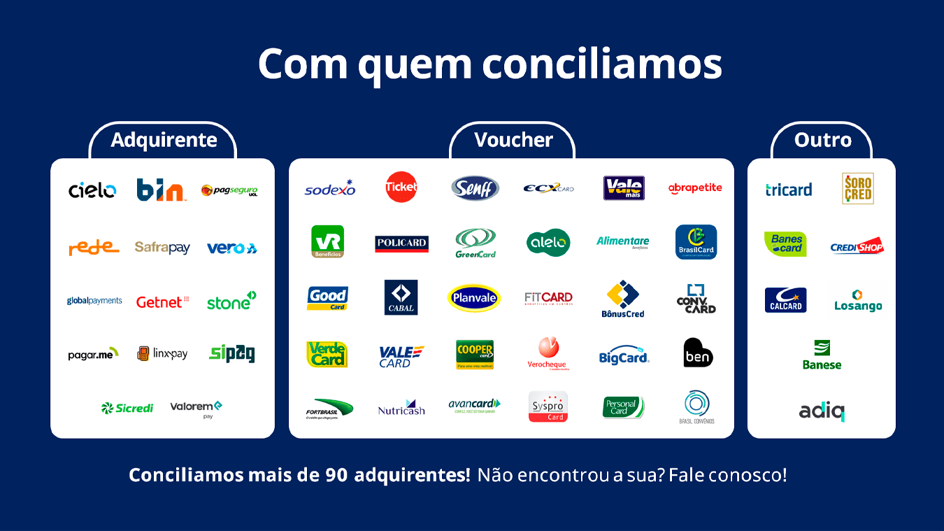 - O sistema mais completo em operadoras e bandeiras (crédito, débito e benefício)
